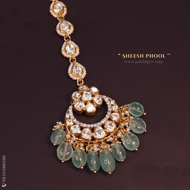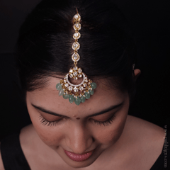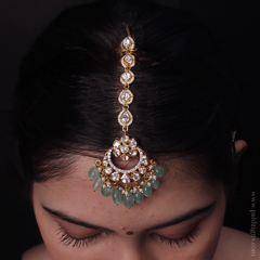 Beautiful and Royal Tikka in Moissanite polkis for a Bridal look.