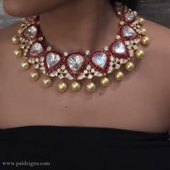 Shezaadi Moissanite Big Polki Necklace Set