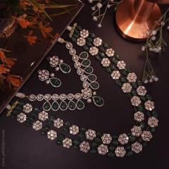 IMPORTANT: Pictures uploaded on our website are Phone Camera Clicked & No Beauty edits are done except Watermarking and Design Name text. Stone's colour and Gold Rhodium colour may look a little different in every new piece. There is no Standard One tone which is given every time a new piece is manufactured.