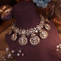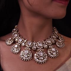 Gorgeous looking Moissanite Polki Combo Necklace for Wedding related functions.