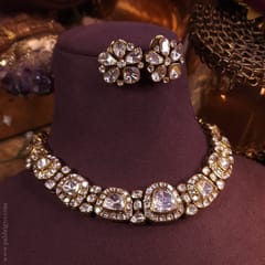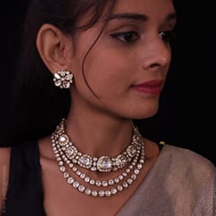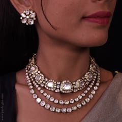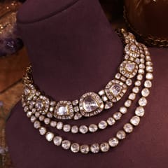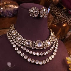 Sufii Nazraana Antique Moissanite Polki Combo Necklace Set