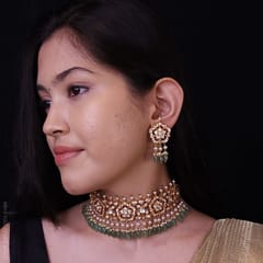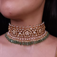 Real-looking polki jewellery Choker Set for Wedding related functions.