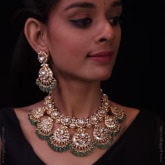 Stones: This Necklace Set has an Excellent Lustre of Moissanite Polkis like Real Polkis. They have Silver Daak at the Backside and are set in an open setting with a open back.