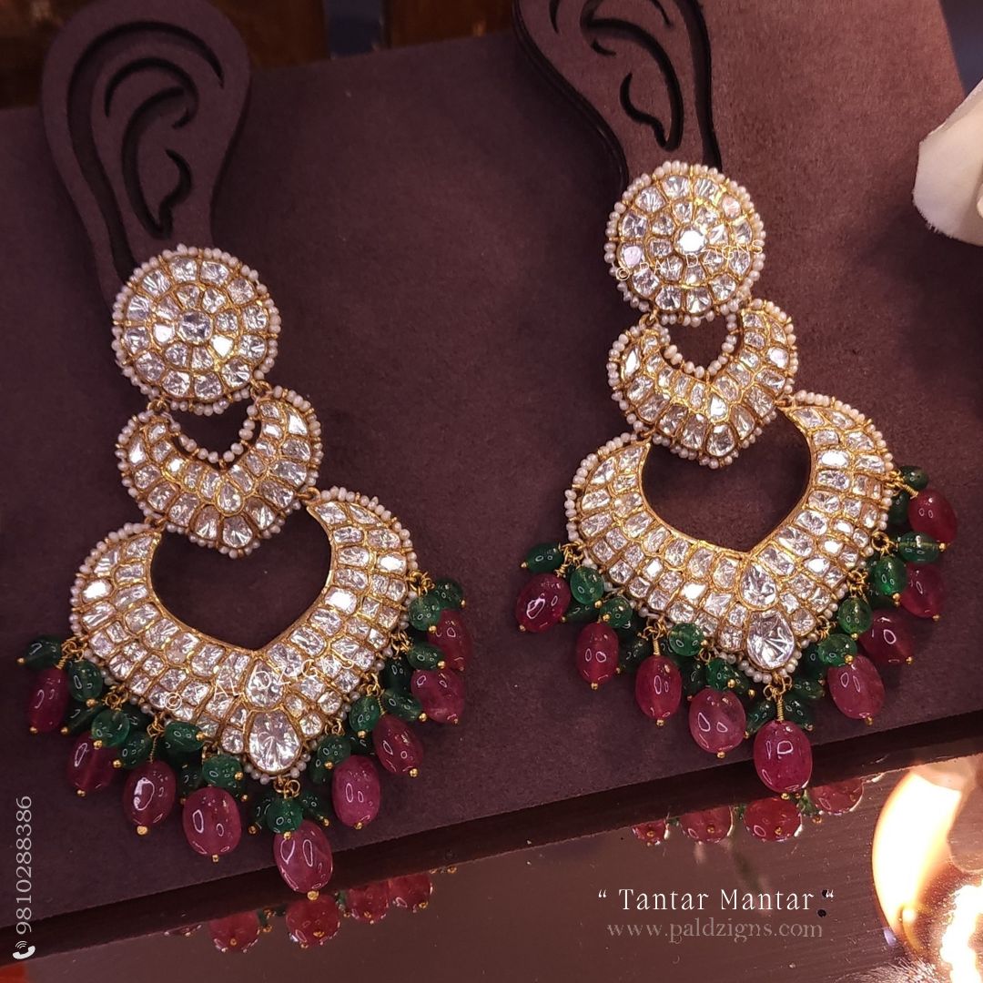Stones: This Earring has an Excellent Lustre of Moissanite Polkis like Real Polkis. They have Silver Daak at the Backside and are set in an open setting with a closed back.