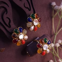 Absolutely Real-looking Polki jewellery Stud And Ring Combo for wedding functions.