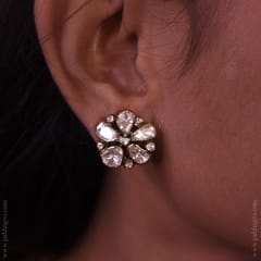 Stone: It has an Excellent Lustre of Moissanite Polkis which are the best substitute for Real Polkis. These polkis have Silver Daak at the Backside and are set in an open setting with a closed back.