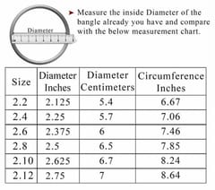 Bangle Sizes: 2-8" bangle size i.e inner diameter is 6.5cm (please check universal chart or your bangle size inner diameter)