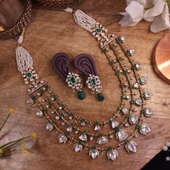 Gorgeous looking Moissanite Polki Long Necklace Set for Wedding related functions.
