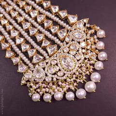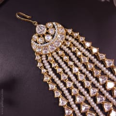 Stone: It has an Excellent Lustre of Moissanite Polkis which are the best substitute for Real Polkis. These polkis have Silver Daak at the Backside and are set in an open setting.